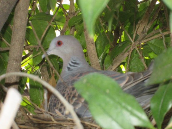 我が家のキンモクセイの木に鳩が巣を作りました。