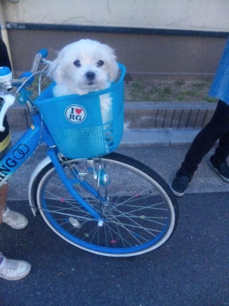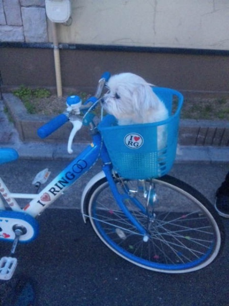 そのワッフルちゃんが自転車のカゴに乗せられ、