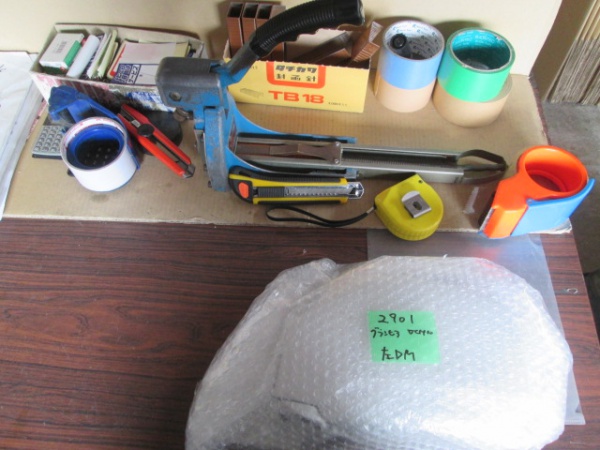 周りにあるのは梱包をする為の道具を置いてます。