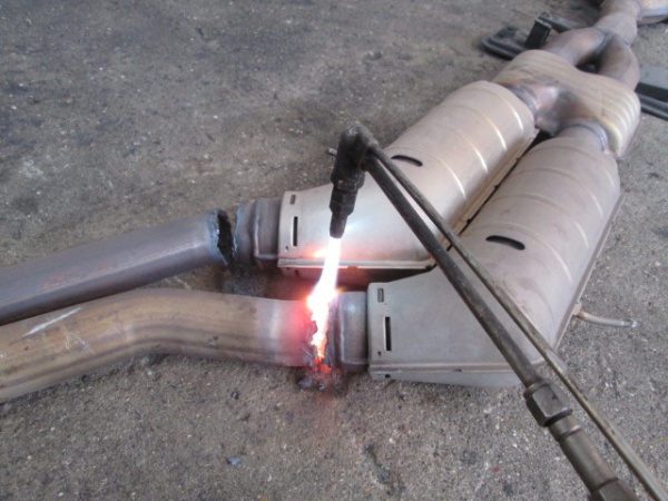 車のマフラー(鉄)をアセチレンガスと酸素をを使って溶断(ガス切り)をUPします。